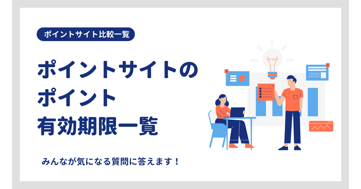 比較一覧ポイントの有効期限はログイン、もしくはポイントを獲得すると期限が更新されるサイトがほとんどです。